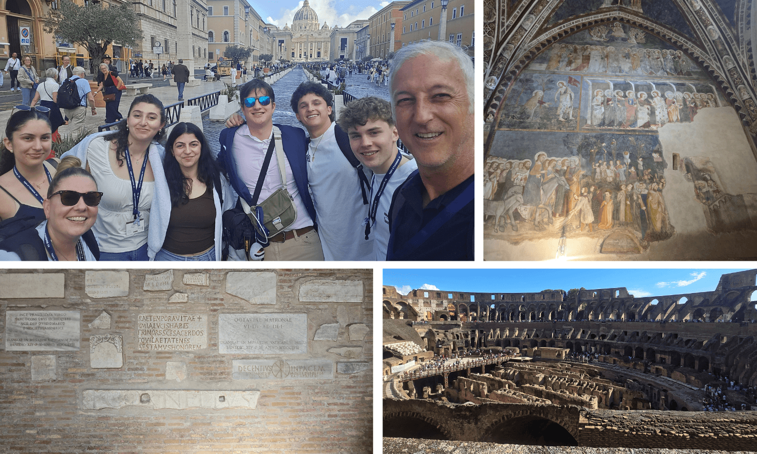 Our journey through Benedictine Rome was like stepping into the pages of Christian history. The visits to three of the four major Basilicas, the awe-inspiring Papal Audience in St Peterās Square where thousands gathered in joyful faith and the pilgrimage to Subiaco were moments of deep spiritual encounter. Standing inside the Sacro Speco, the sacred cave where Benedict lived in solitude for three years before founding his communities, was profoundly moving. In that quiet, dimly lit space, we could almost feel the weight of his prayer and the presence of his struggle, a man who sought God in silence before he was called to lead others. The number three holds deep symbolism - Benedictās three years of retreat, Jesusā three days in the tomb before rising and the eternal mystery of the Trinity. It reminds us that transformation often follows periods of waiting, silence and rebirth. For many students, standing in that cave was the most sacred moment of the entire experience, a moment of stillness, reverence and deep connection with the roots of our faith and tradition.