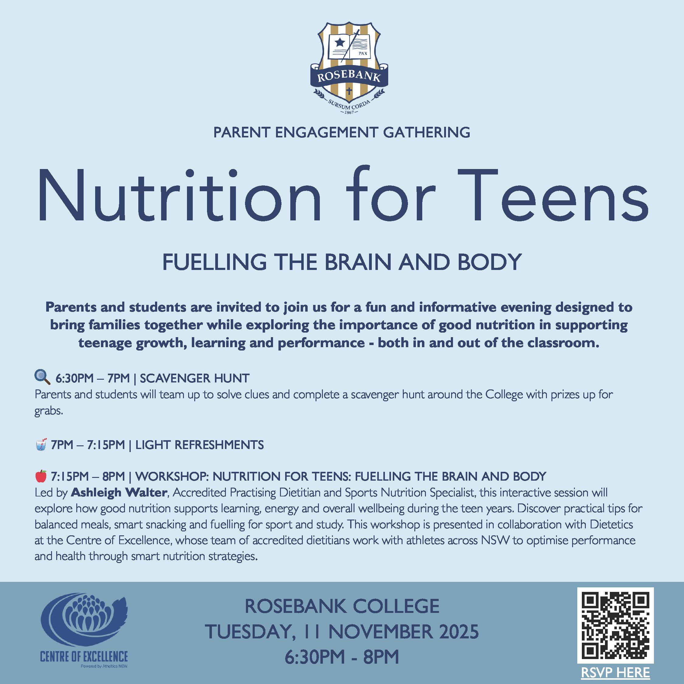 Join us on Tuesday, 11 November, for our final parent engagement gathering for the year.