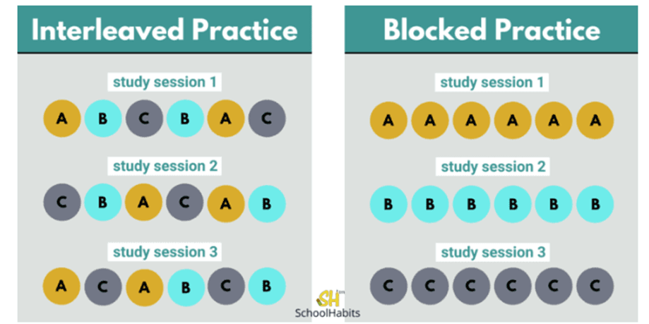 A highly effective study strategy is interleaving. Rather than focusing on one topic for an extended period (known as blocking), interleaving involves mixing different topics or types of questions within a single study session. For example, instead of completing only one type of problem, students alternate between multiple topics.
